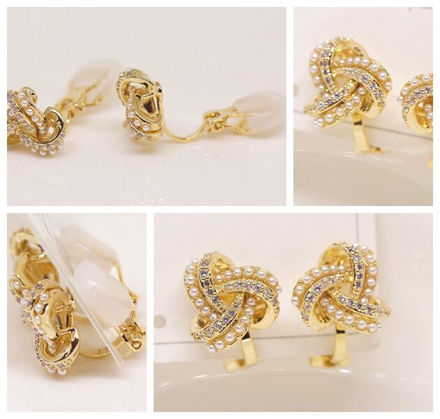 18K RGP ゴールド ダイヤ CZ フラワー イヤリング gp5722