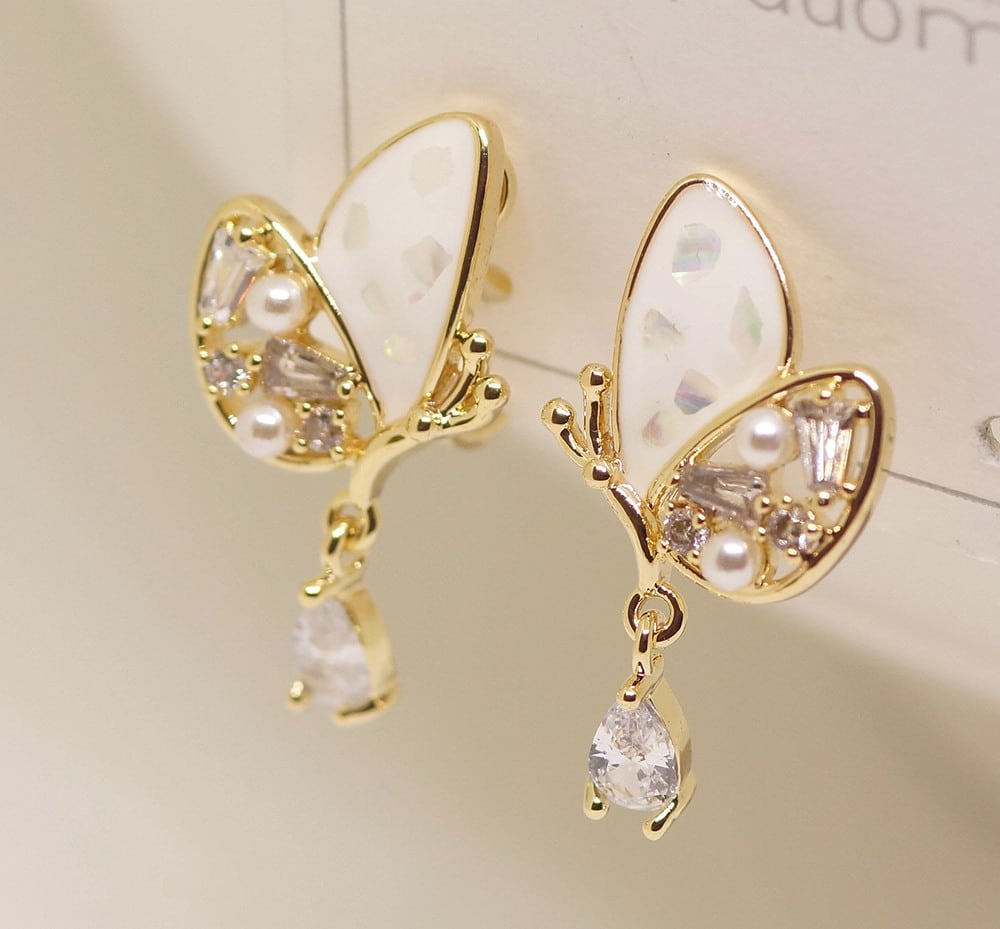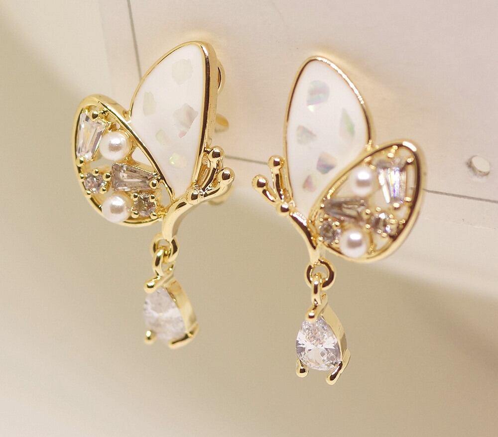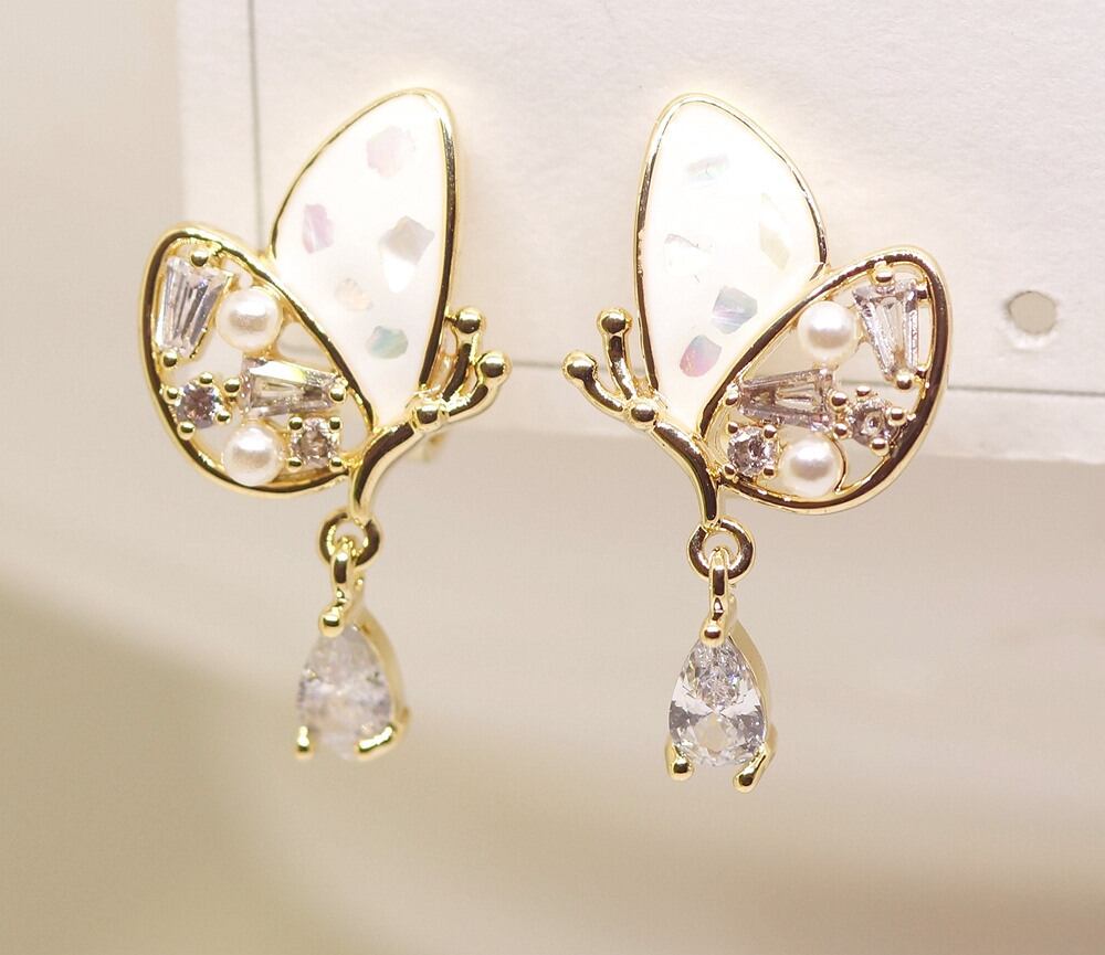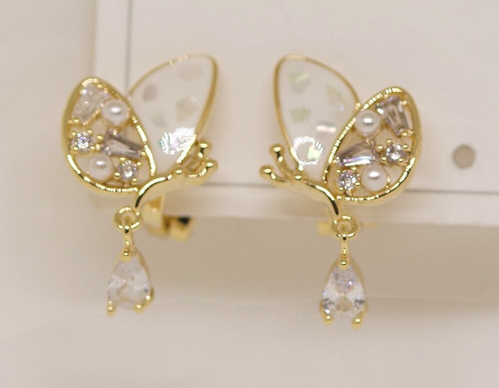 18K RGP ゴールド ダイヤ CZ 蝶々 雫 イヤリング gp5730