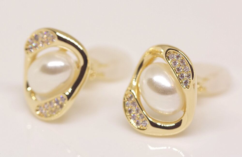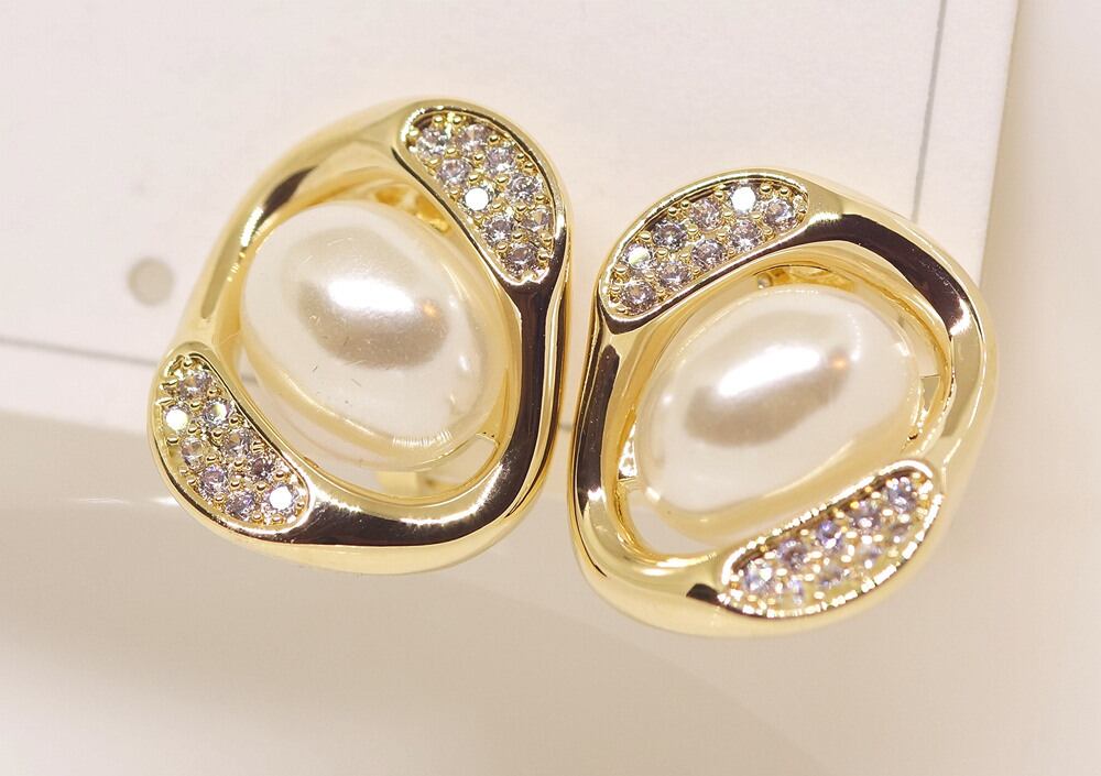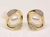 18K RGP ゴールド ダイヤ CZ フラワー パール イヤリング gp5729