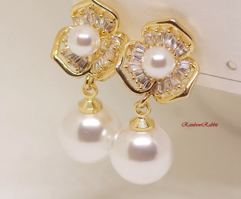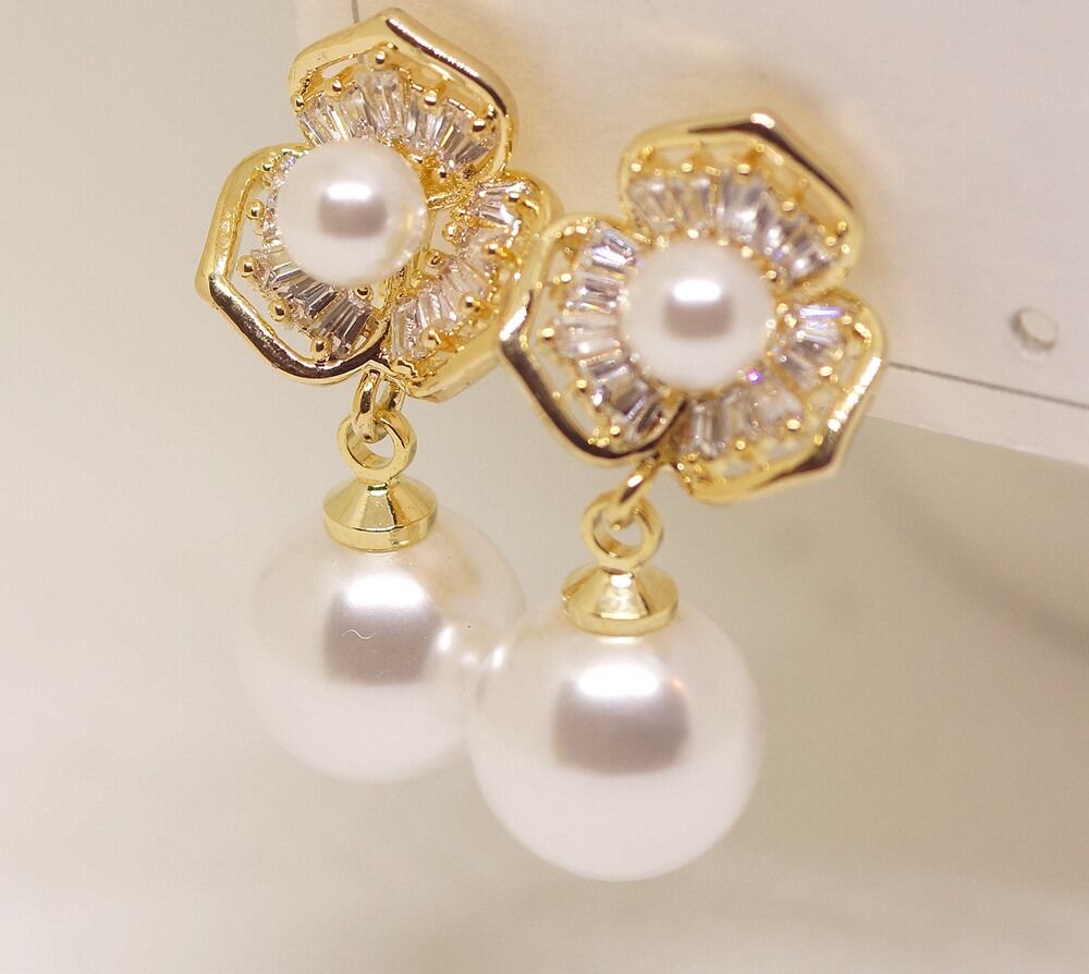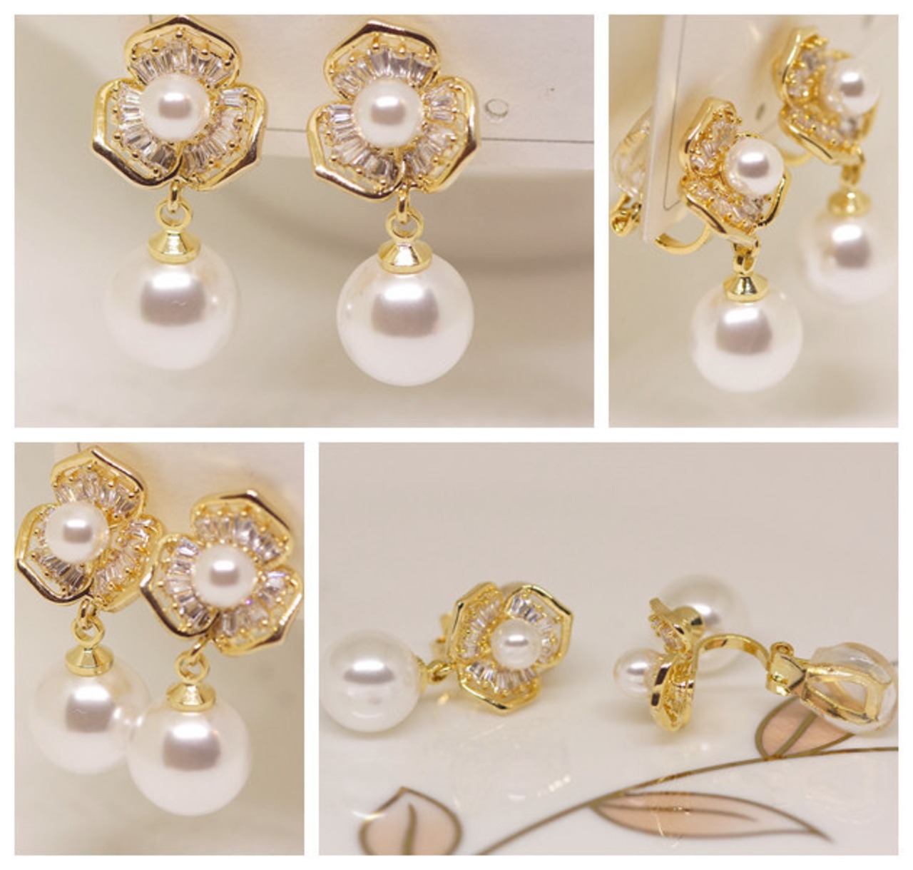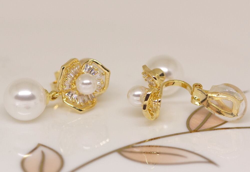 18K RGP ゴールド ダイヤCZ フラワー パール イヤリング gp5737