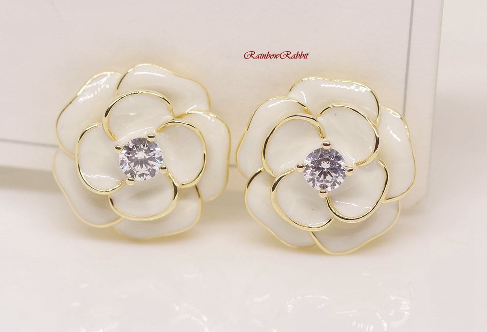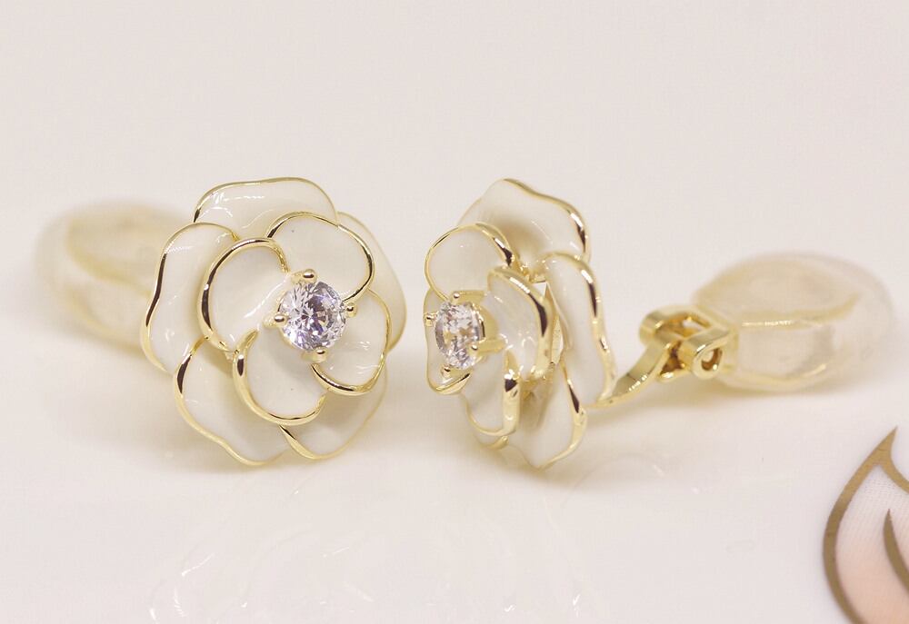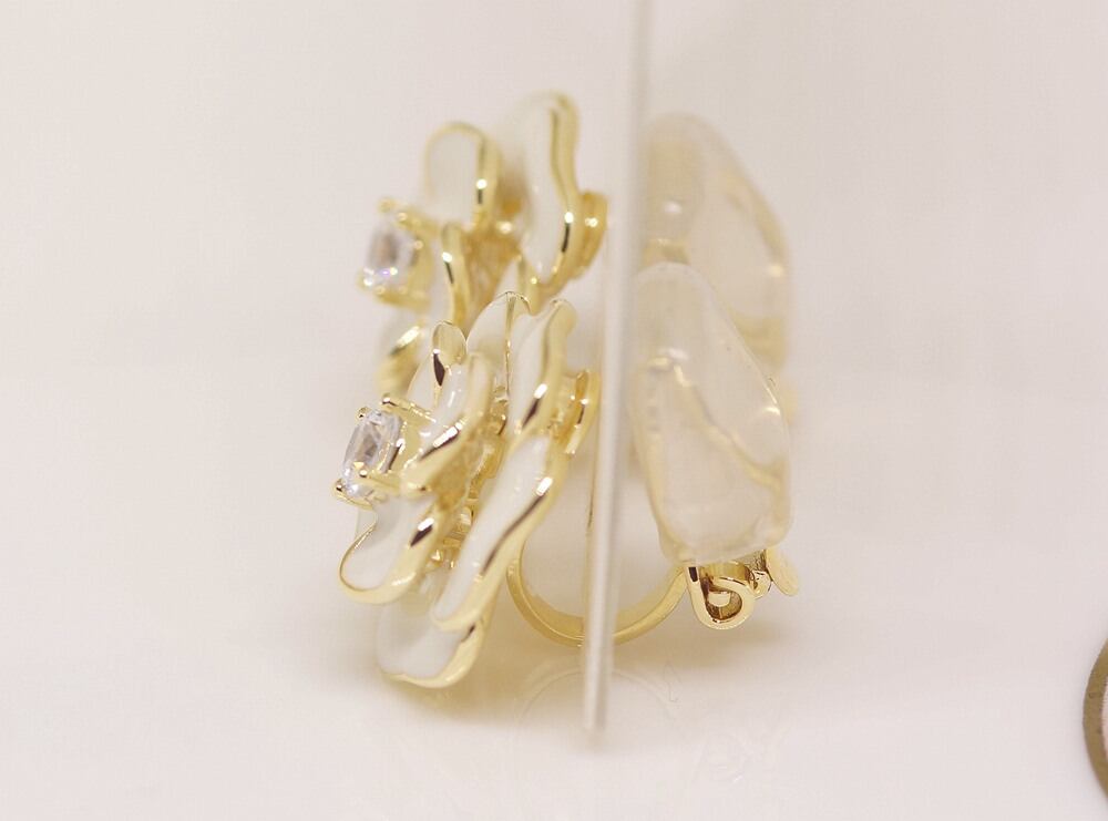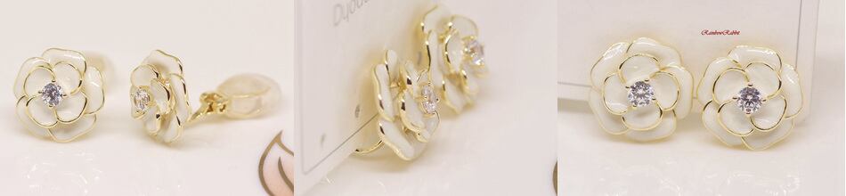 18K RGP ゴールド ダイヤ CZ ホワイト バラ イヤリング gp5714