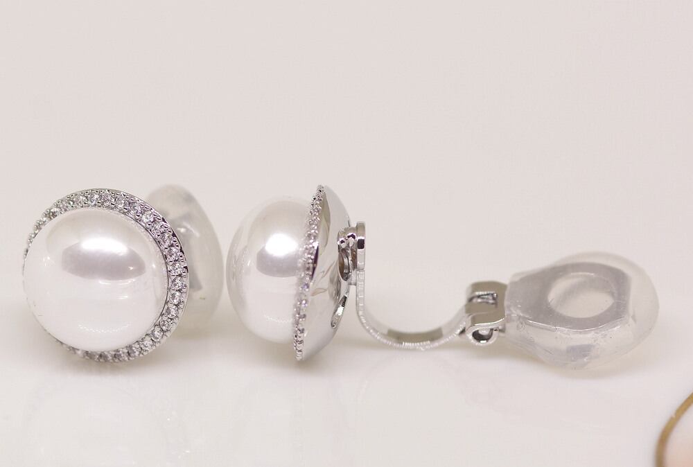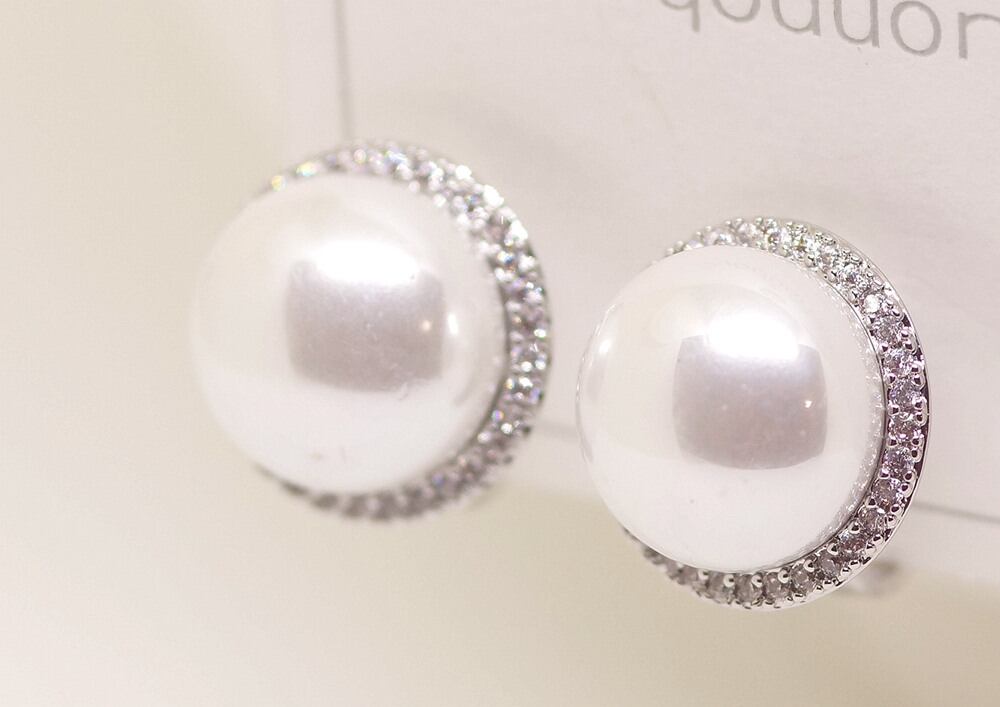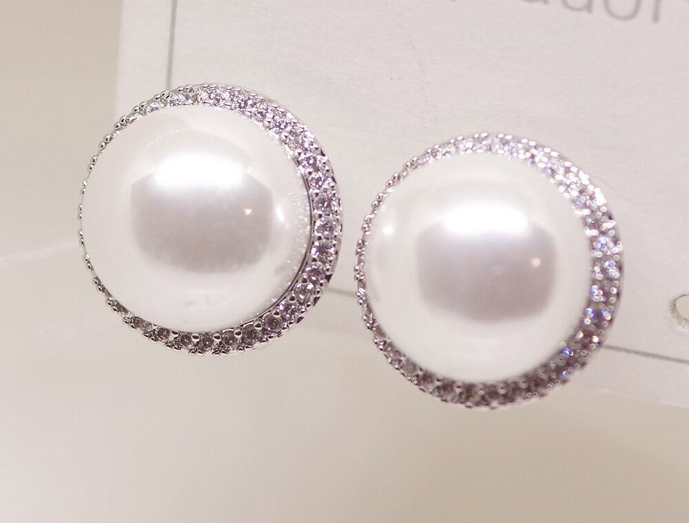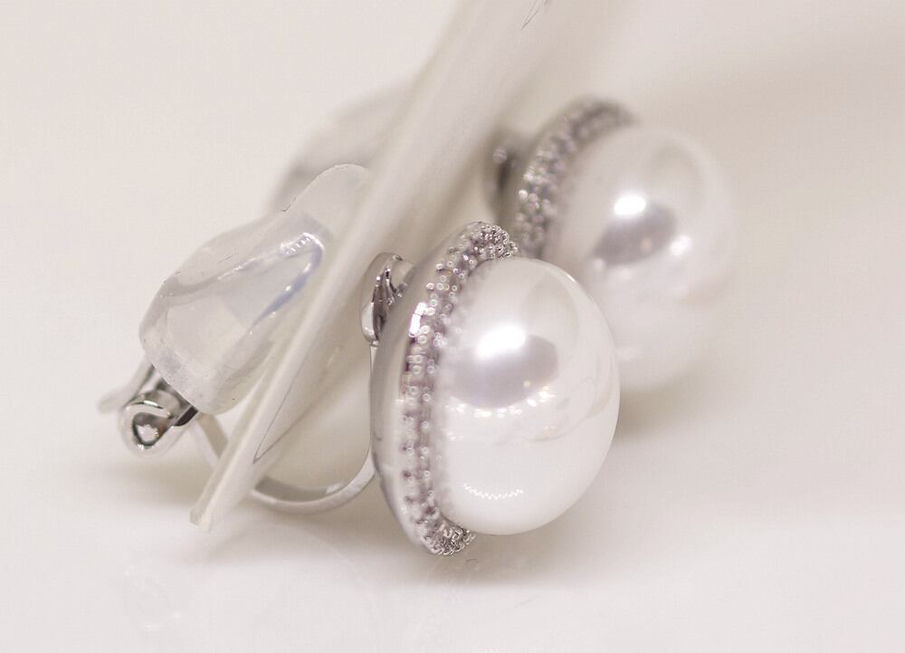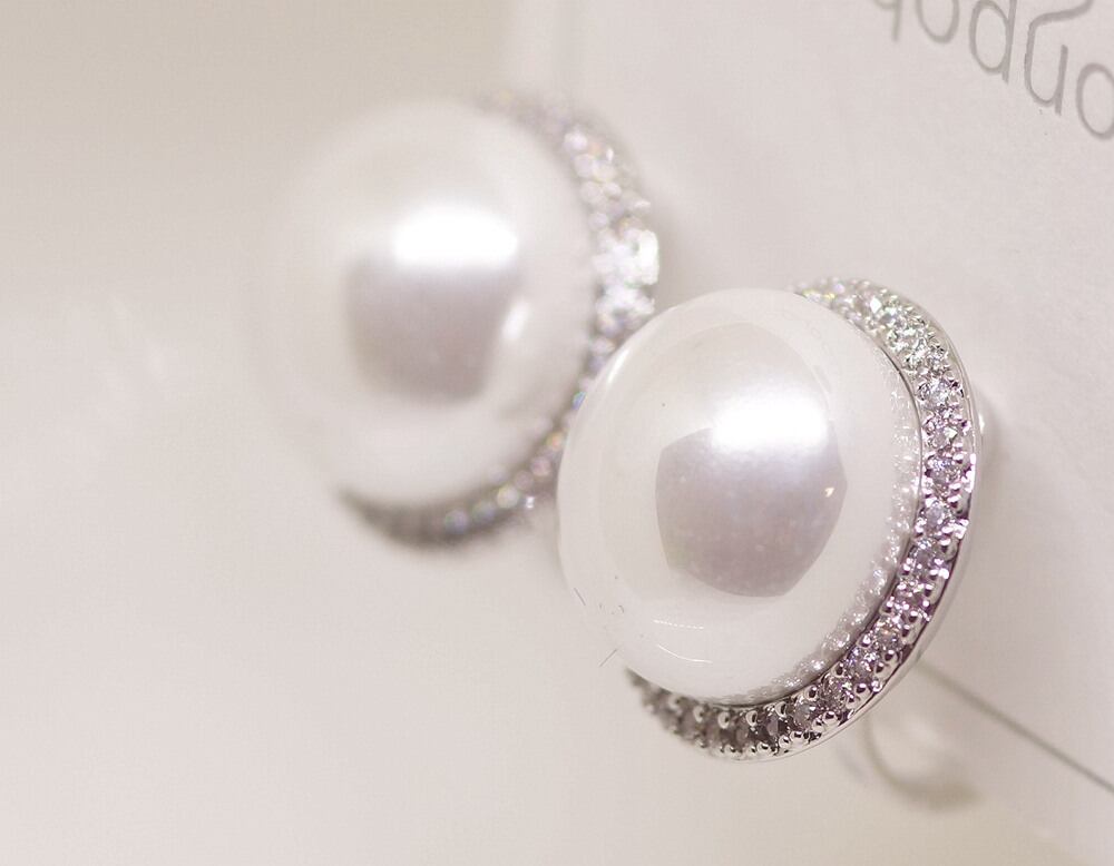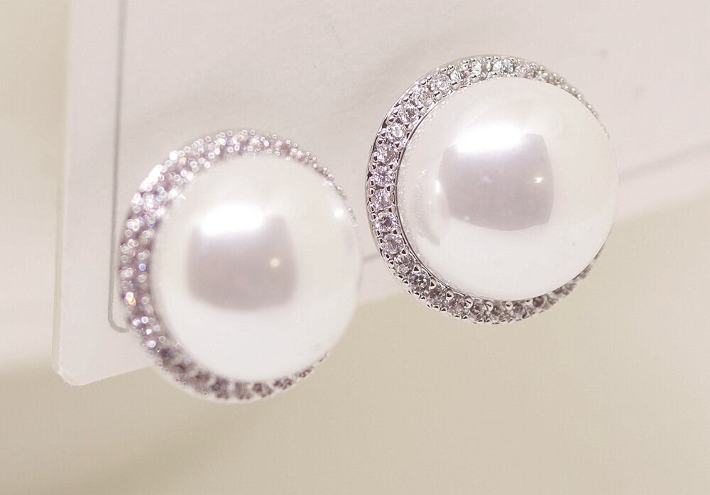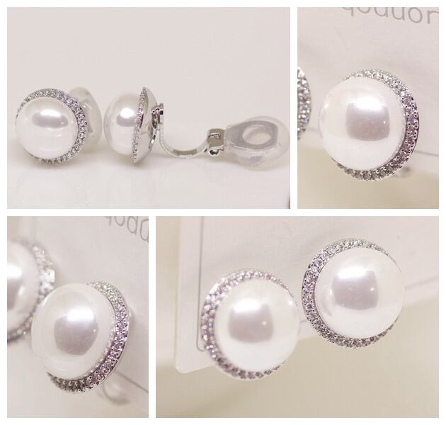 18K RGP プラチナ ダイヤ CZ パール イヤリング yp5027