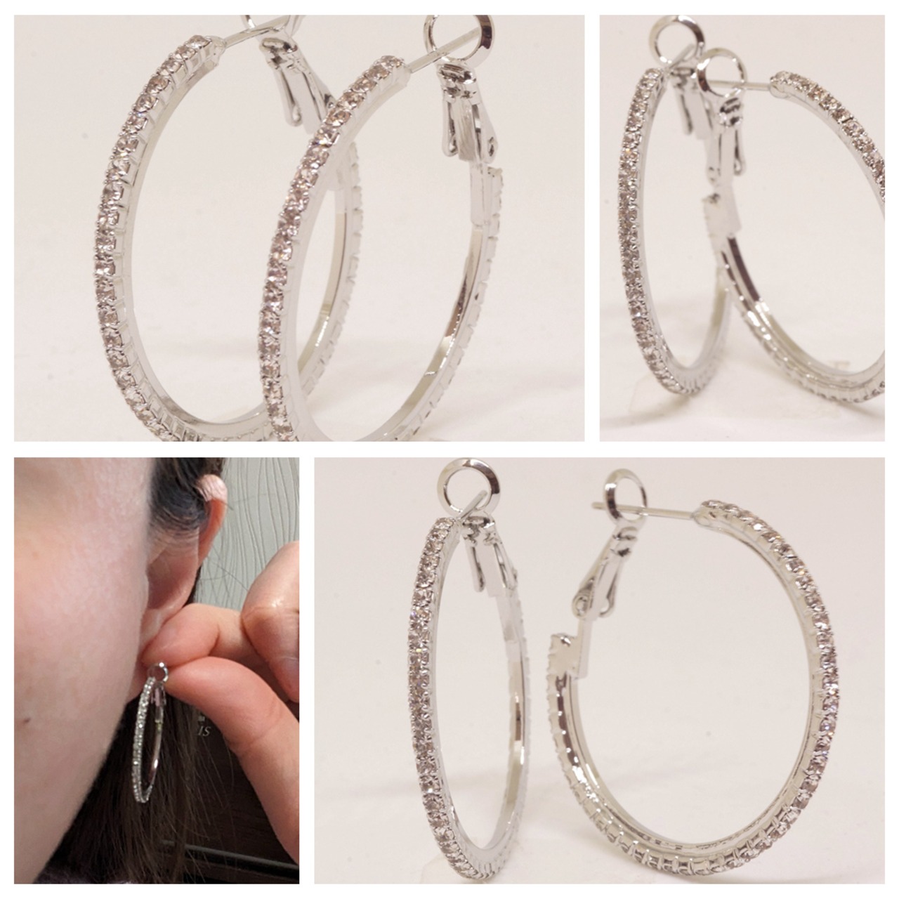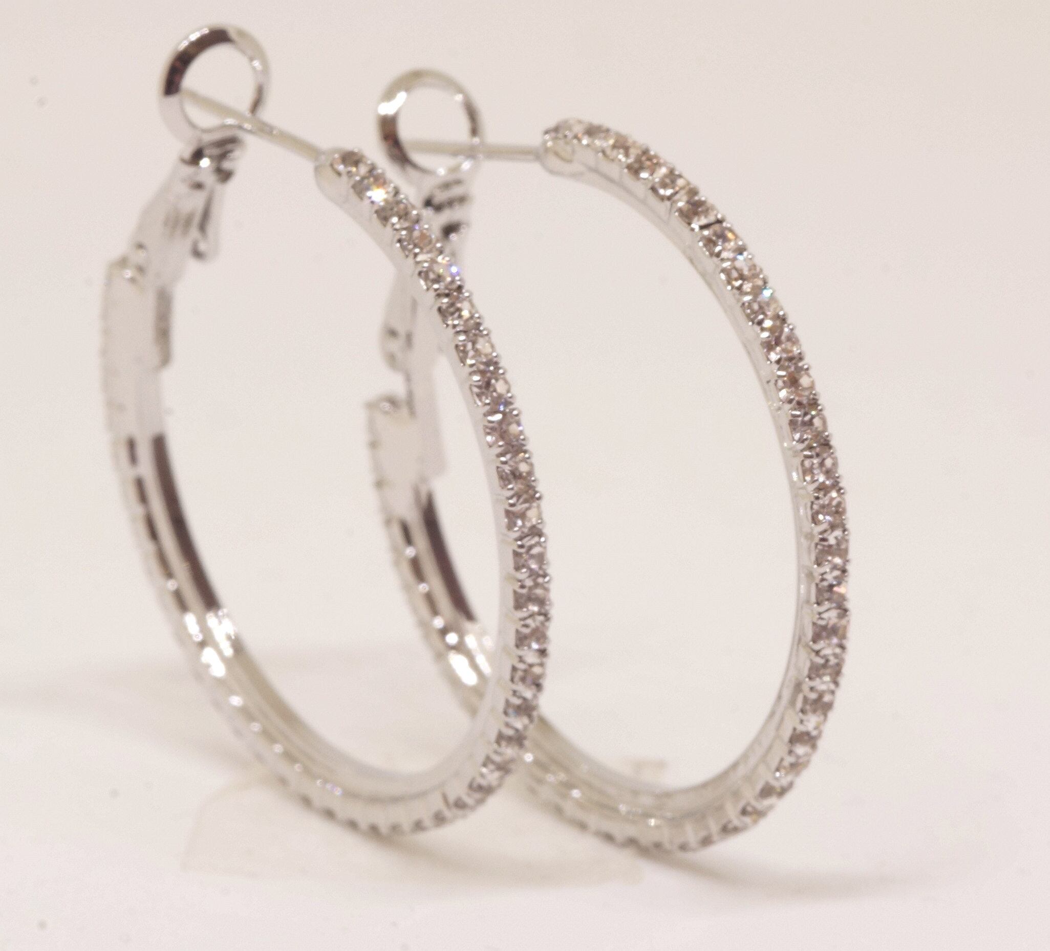 18K RGP プラチナ ダイヤ CZ 直径約40mm リング ピアス yp4937a