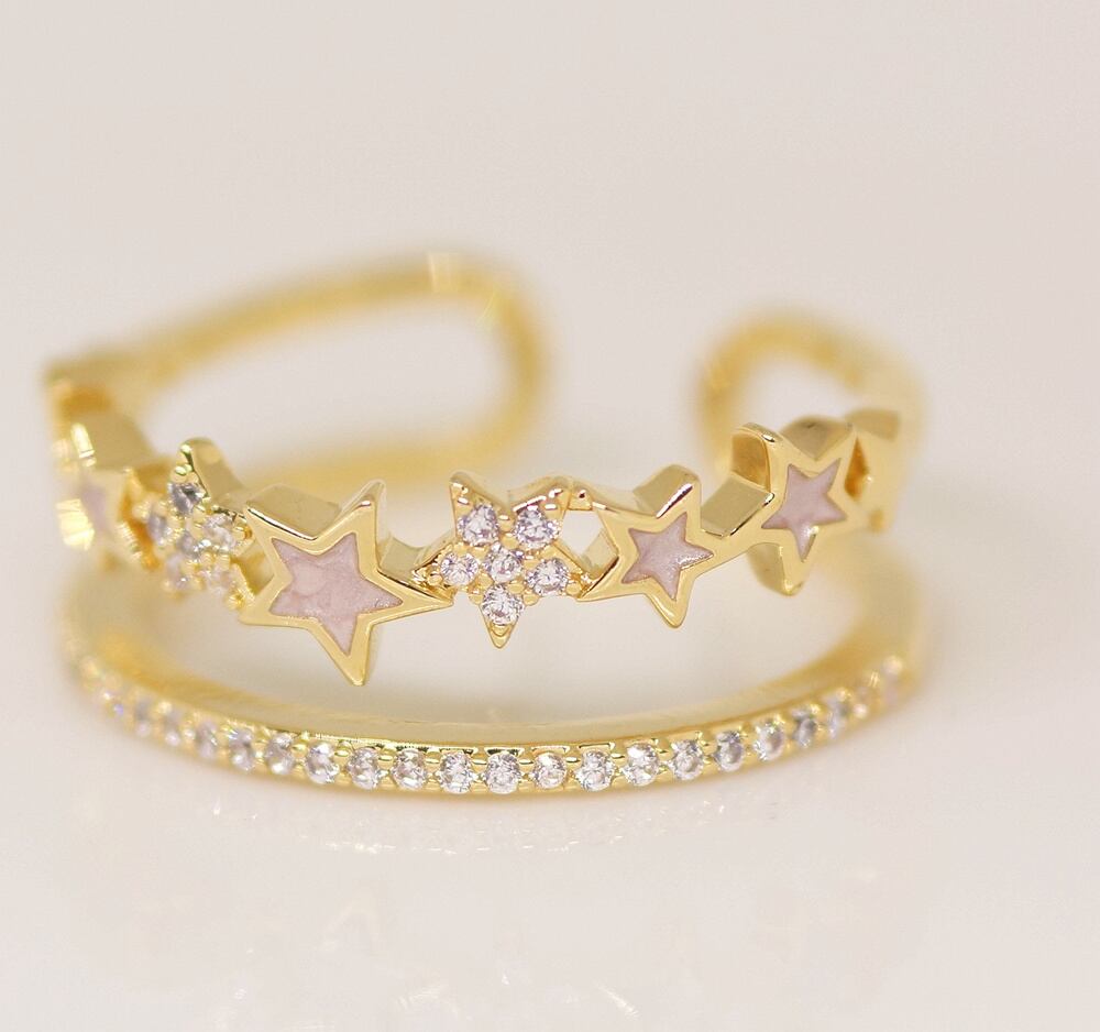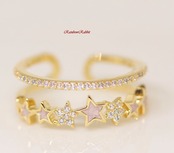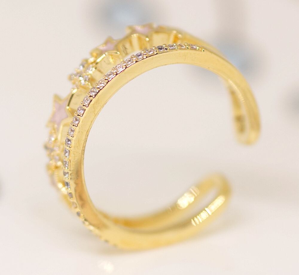18K RGP ゴールド ダイヤ CZ スター ハーフ エタニティ リング gu1494e
