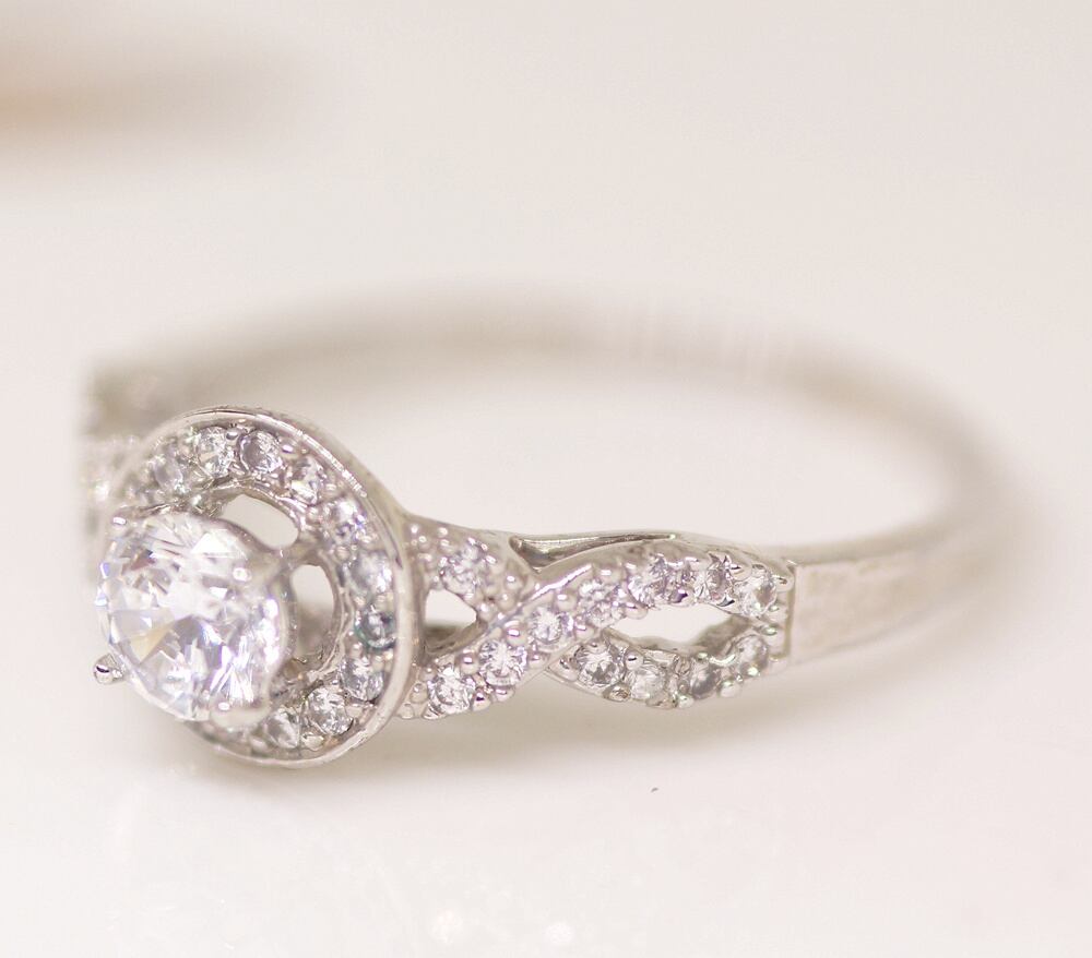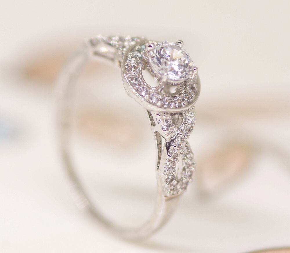 18K RGP プラチナ ダイヤ CZ 一粒 上質 リング yu1181e