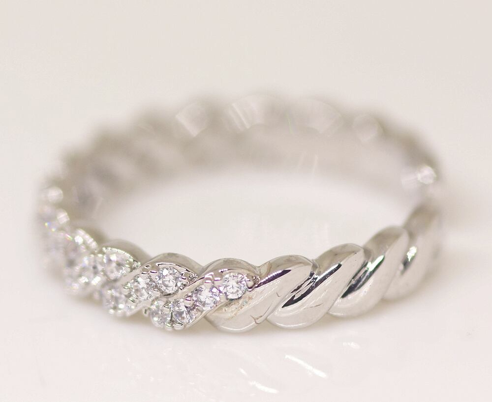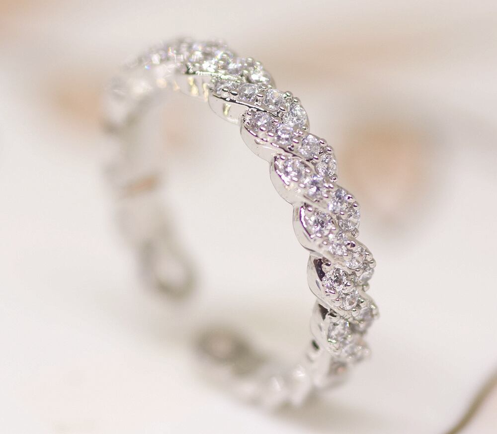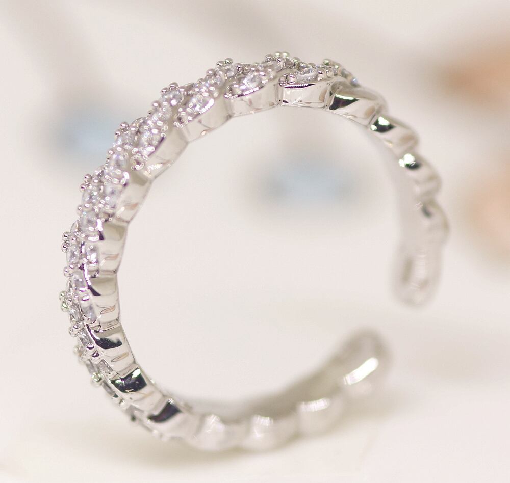 18K RGP プラチナ ダイヤ CZ 編み込み オシャレ リング yu1176e