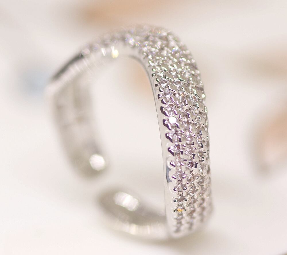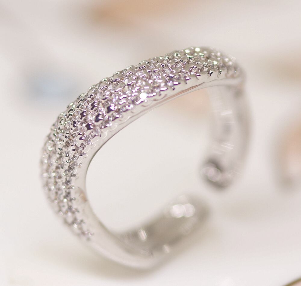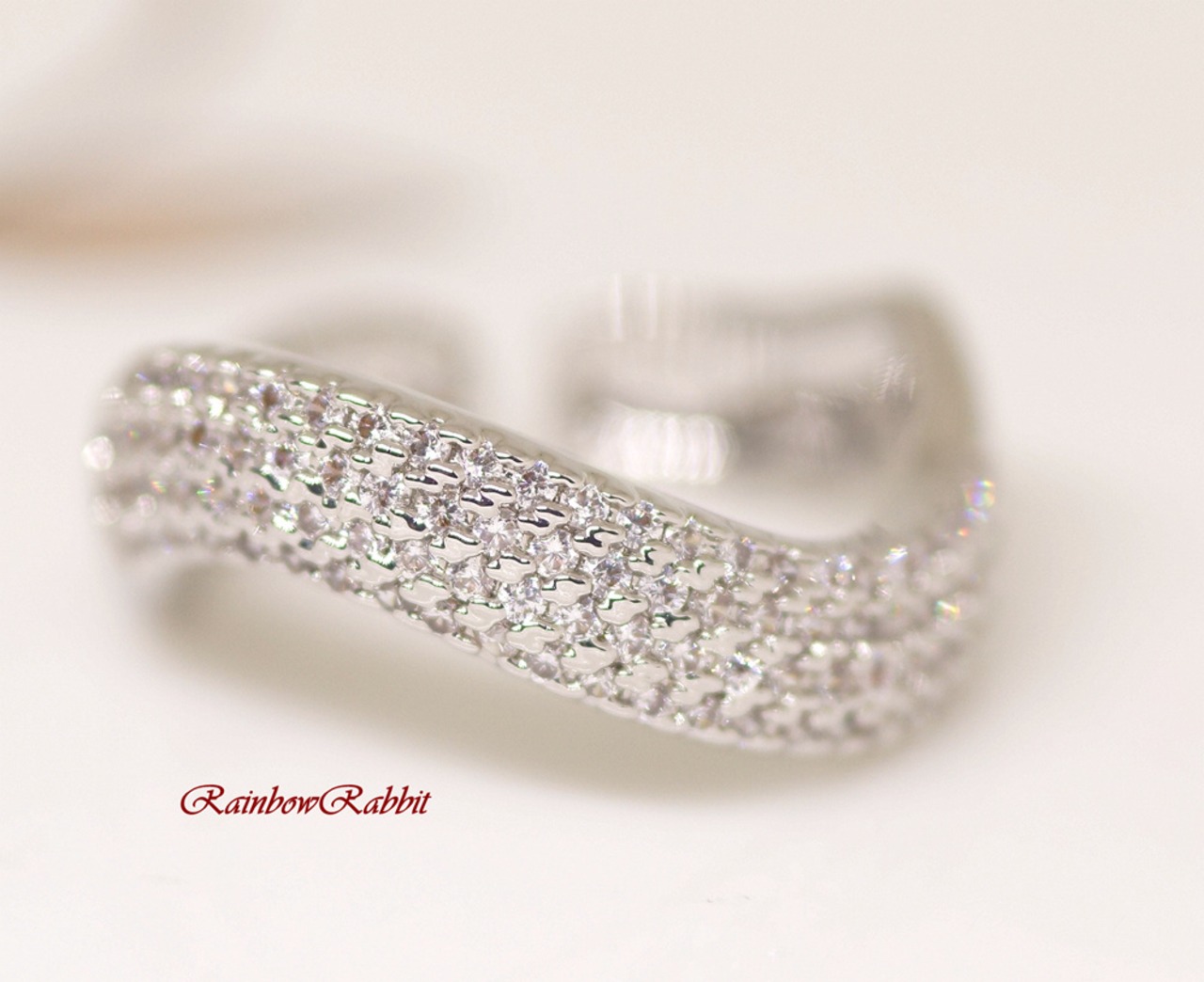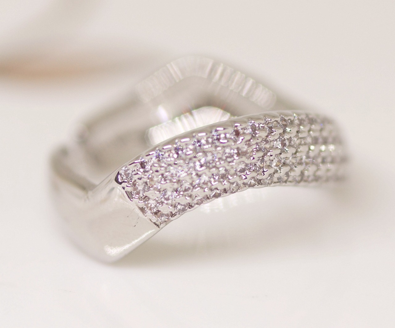 18K RGP プラチナ ダイヤ CZ ウェーブ リング yu1174e