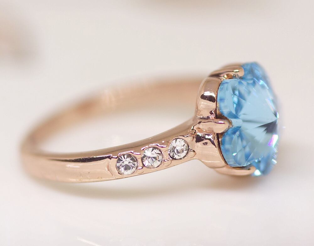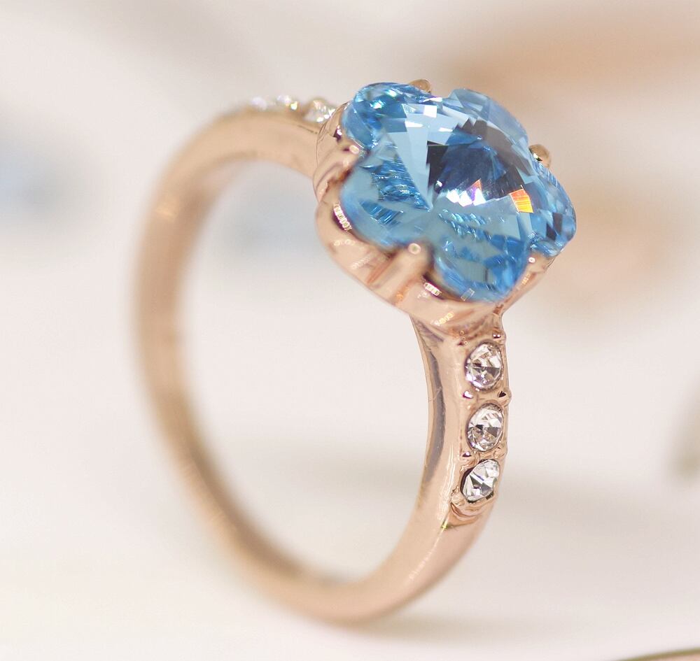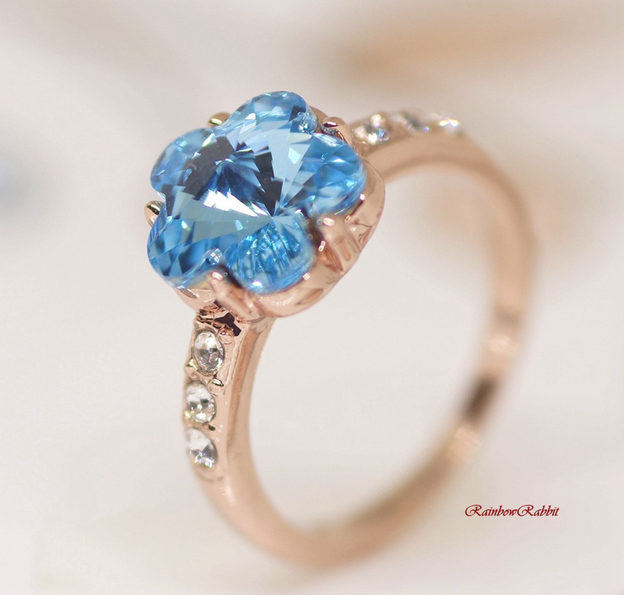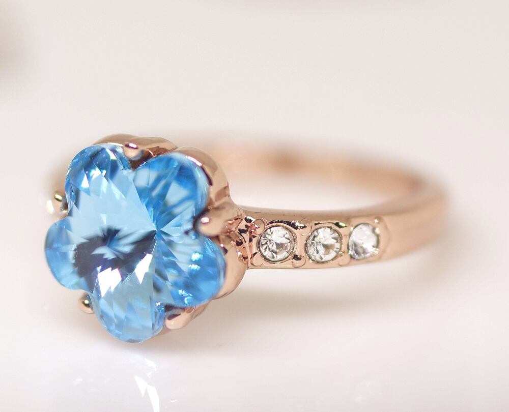 18K RGP ゴールド ダイヤ CZ ブルー フラワー リング gu1516e