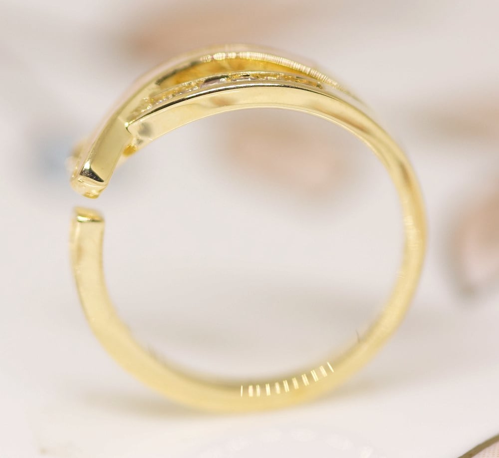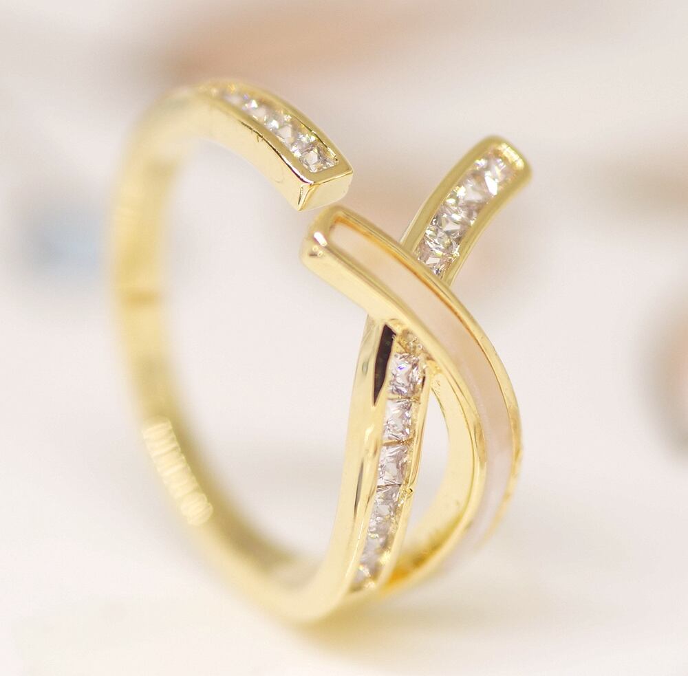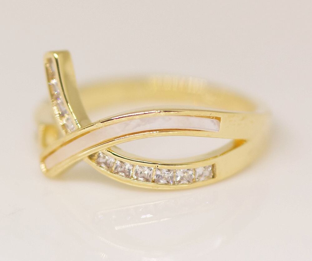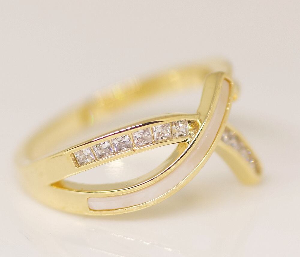 18K RGP ゴールドダイヤCZ フラワー 天然貝殻石 リング gu1495e
