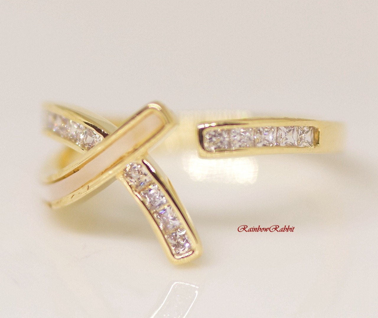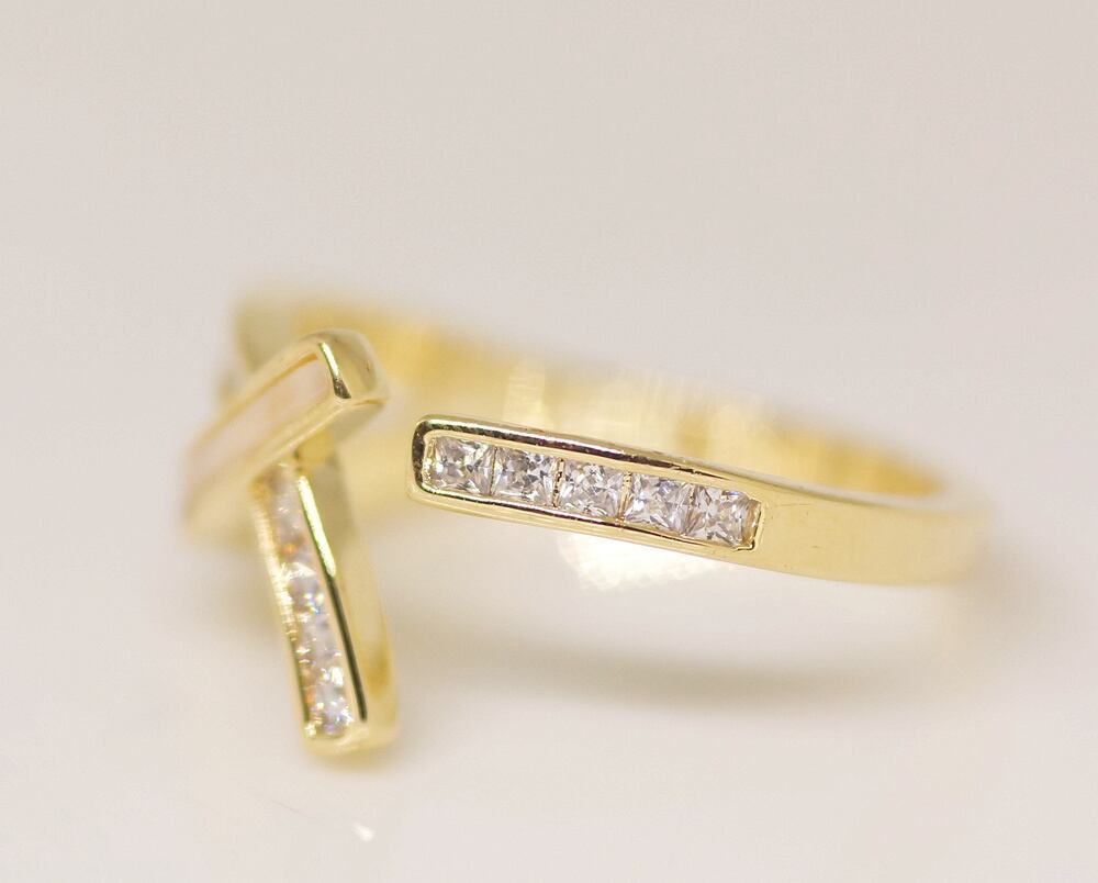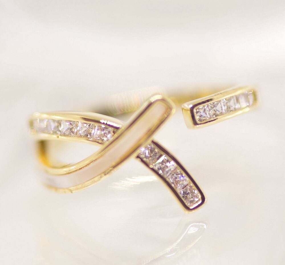 18K RGP ゴールドダイヤCZ フラワー 天然貝殻石 リング gu1495e