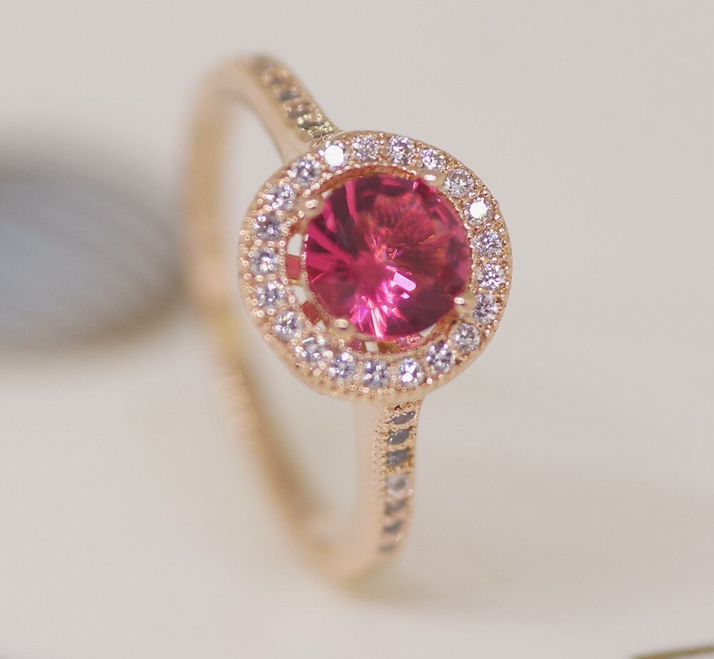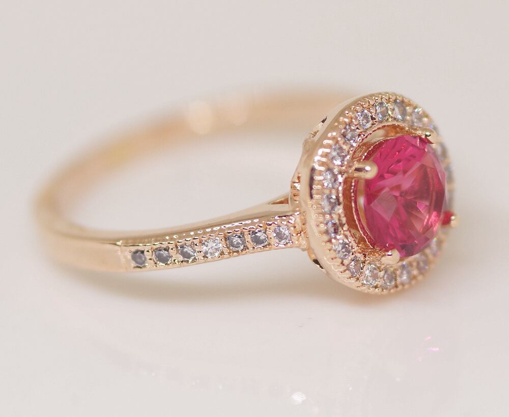 18K RGP ゴールド ダイヤ CZ 赤ワイン 一粒 リング gu1515e