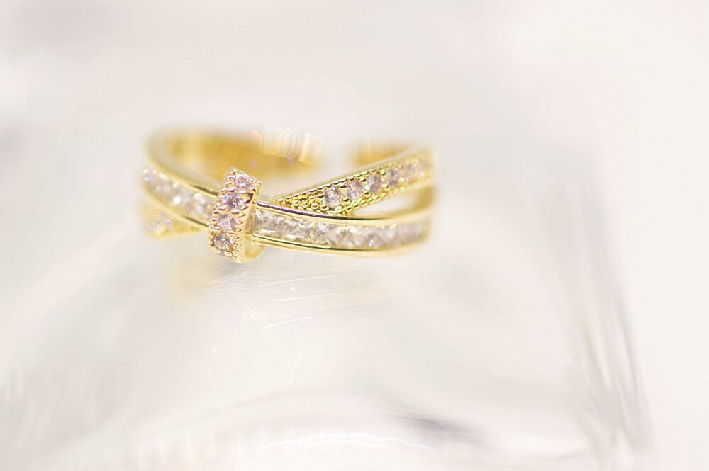 18K RGP ゴールド ダイヤ CZ リボン ハーフ エタニティ リング gu1496e