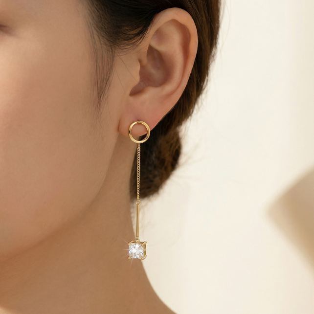 18K RGP ゴールド ダイヤ CZ ロング揺れ ピアス gp5741