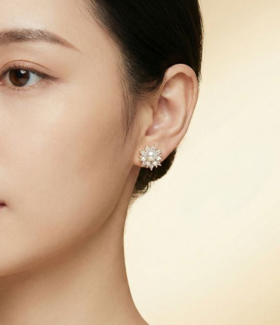 18K RGP ゴールド ダイヤ CZ フラワー パール イヤリング gp5742