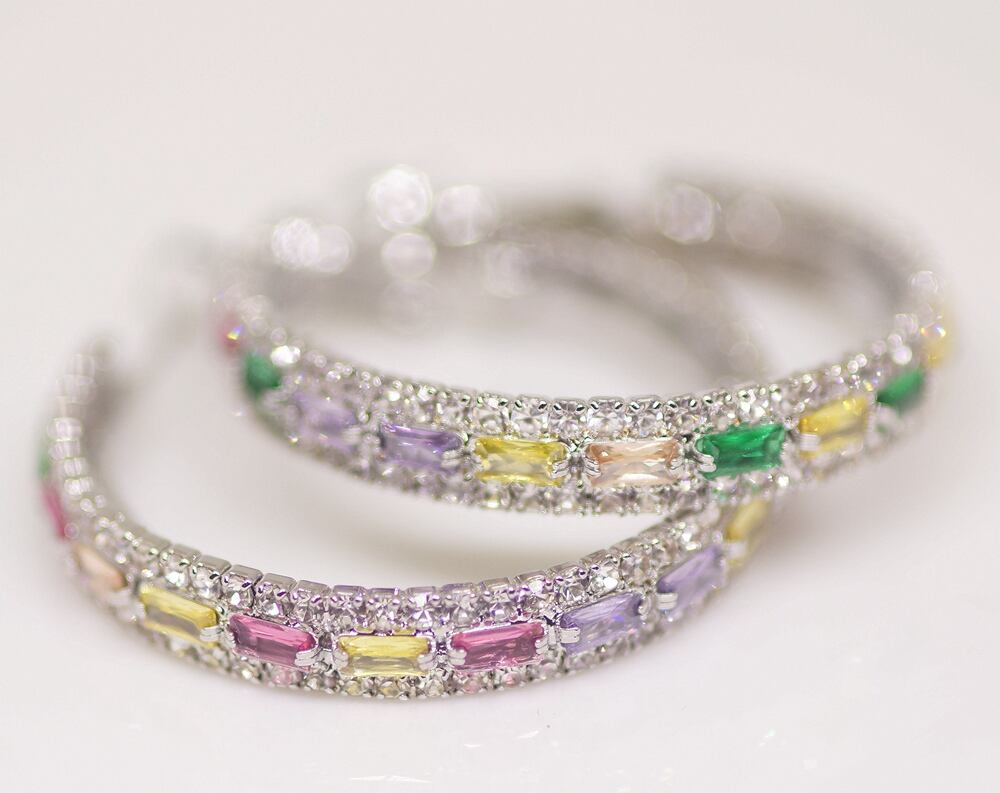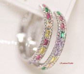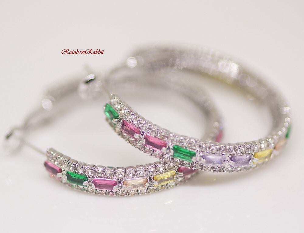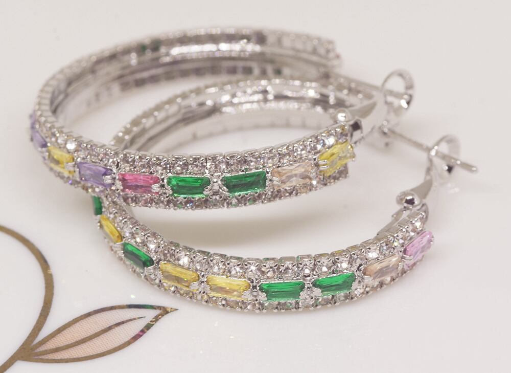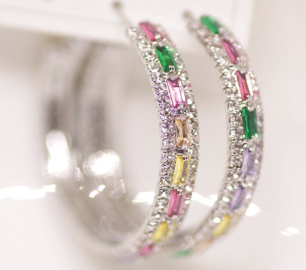 18K RGP プラチナ ダイヤ CZ 直径30mm 彩石 リング ピアス yp5064