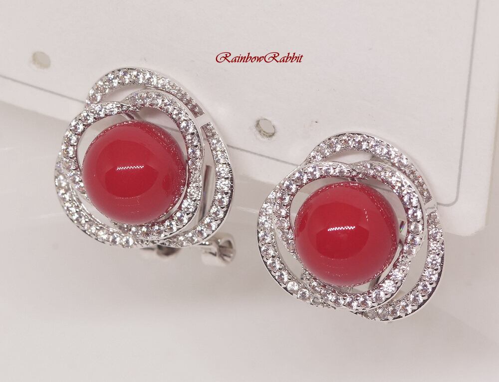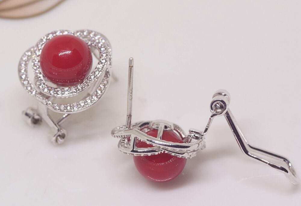 18K RGP プラチナ ダイヤ CZ 珊瑚色 ボール フラワー ピアス yp5048