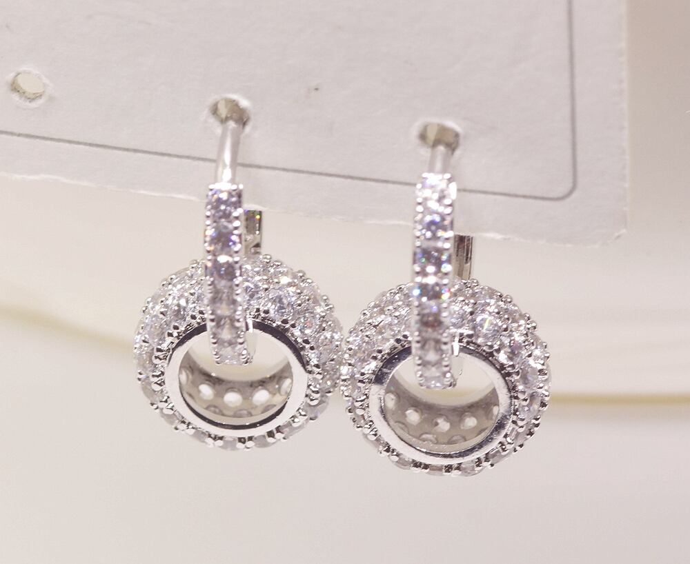 18K RGP プラチナ ダイヤ CZ 2WAY リング ピアス yp5035